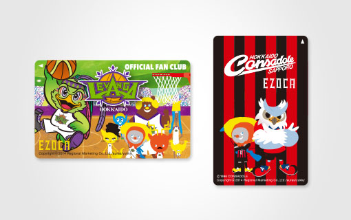 Jリーグ「北海道コンサドーレ札幌」とのコラボカード、Bリーグ「レバンガ北海道」のファンクラブカードとの連携、北海道を応援するキャラクター「雪ミク」とのコラボカードなどを発行して地域を盛り上げる活動に取り組んでいます。北海道コンサドーレ札幌とのコラボカード「コンサドーレEZOCA」では、普段のお買物を通じてチームを支援できる「EZOCAコンサドーレサポートプログラム」を行なっています。