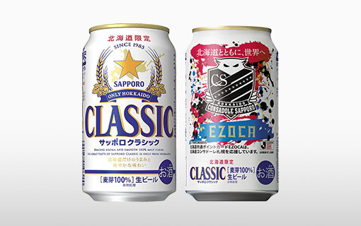 北海道コンサドーレ札幌のスポンサー企業同士でコラボレーションし、オリジナル商品の開発やイベントを開催しています。2016年よりサッポロビールの「サッポロクラシック」と「EZOCA」がコラボし、北海道コンサドーレ札幌を応援する「サッポロクラシック EZOCA コンサドーレ応援缶」を発売。売上げの一部をチームへ還元し、次世代の選手育成に役立てています。
