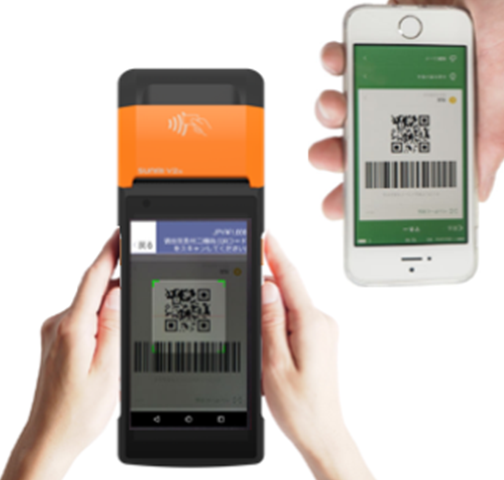 お客様に決済ブランドのQRコードを出していただいて、QRコードを読み込む