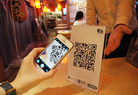 お客様に決済ブランドのQRコードを出していただいて、QRコードを読み込む